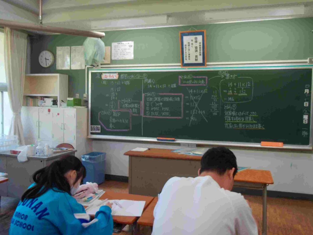 わかりやすい板書(1年) 2026年4月16日 最終更新日時 : 2026年4月16日 kumagaya_edit 数学の授業です。大切な部分がわかりやすく板書されています。それに合わせてノートも要点が整理されています。