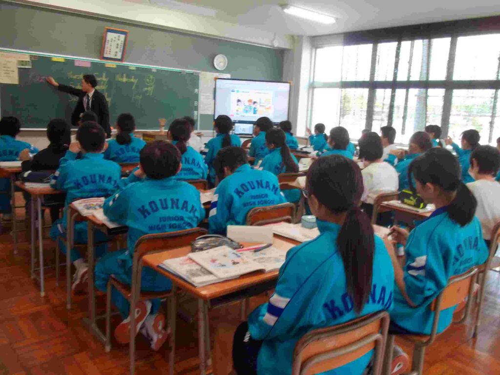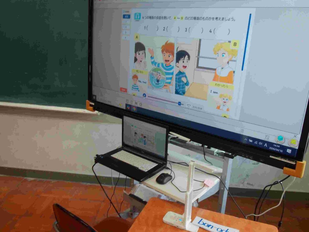 デジタル教科書(1年) 2026年4月16日 最終更新日時 : 2026年4月16日 kumagaya_edit 英語ではデジタル教科書を使っています。どのスライドの内容について話をしているかを考えています。机上には謎の札が。