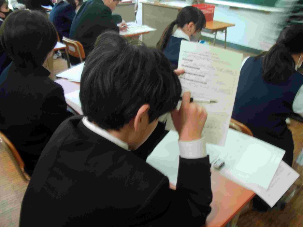 人権作文作成中(1年)