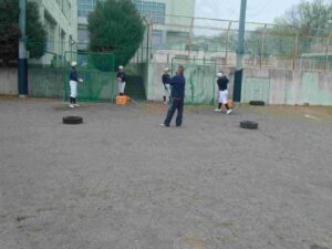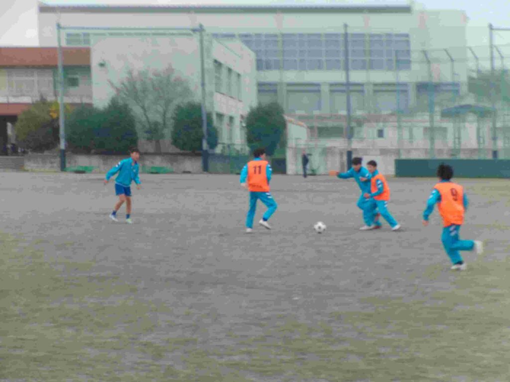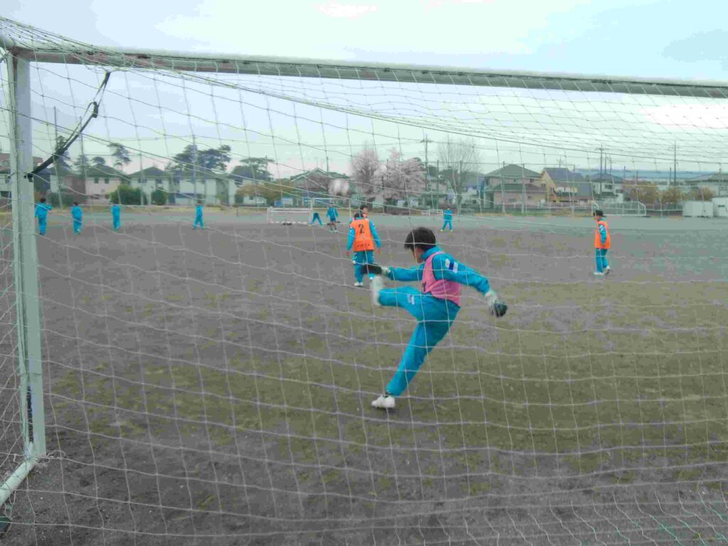 ゴールキックからシュートまでの流れを繰り返し練習しています。