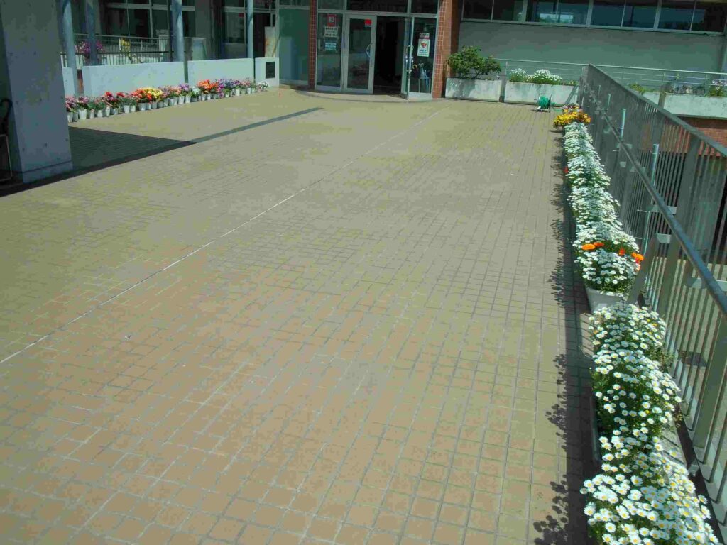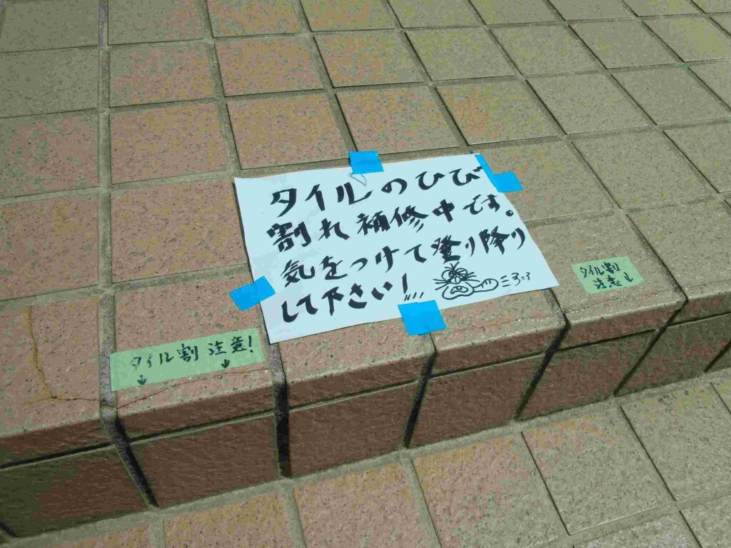 修繕順調 2026年4月20日 最終更新日時 : 2026年4月20日 kumagaya_edit 用務員さんがタイルの目地に補修材を注入。また、事務主任さんが毎日お花に水をあげてくれています。入口がとてもきれいになっています。