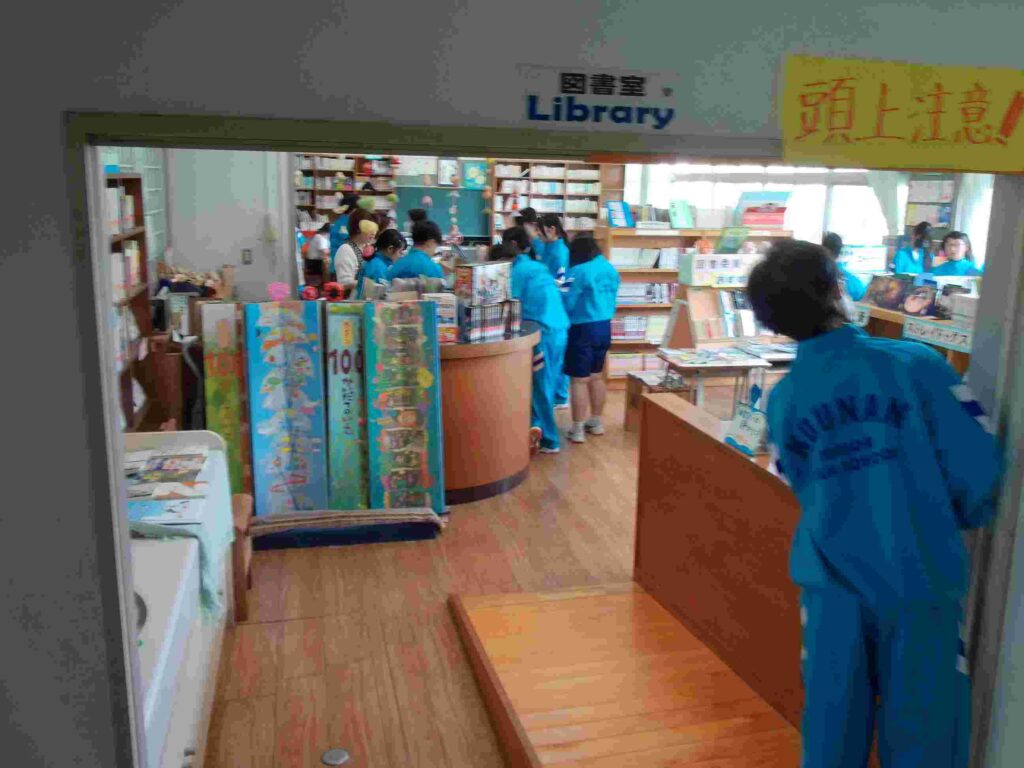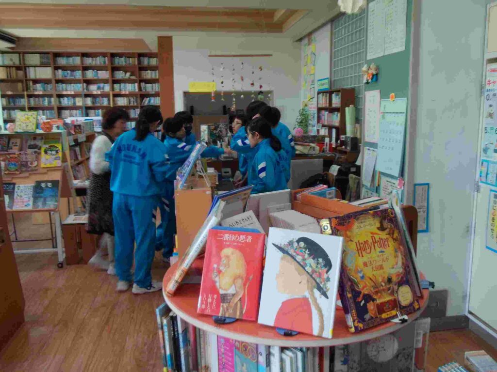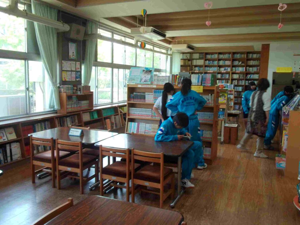 図書委員の先輩から後輩へ業務の引き継ぎが行われています。