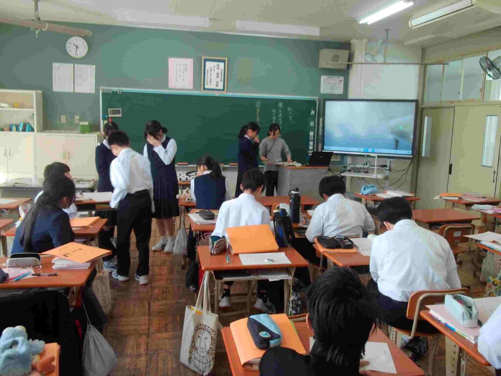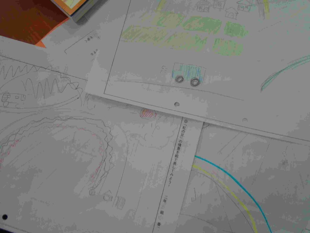 「虹の足」という詩から想像される場面を絵で表現しています。