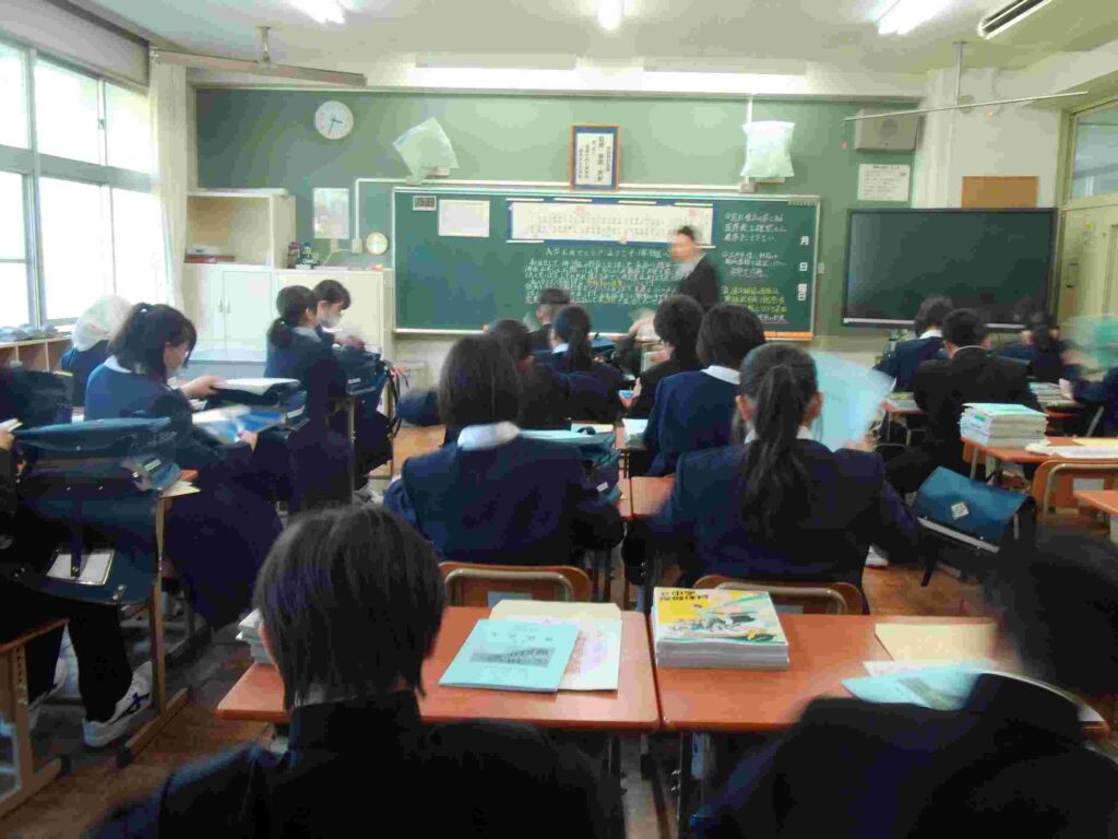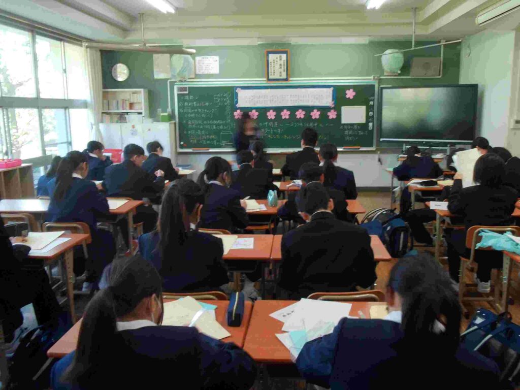 学級開き(1年) 2026年4月8日 最終更新日時 : 2026年4月8日 kumagaya_edit 入学式・写真撮影を終え、新入生は各クラスへ移動。教科書、持ち物、明日からの生活について確認しています。※靴の整頓も行き届いています。