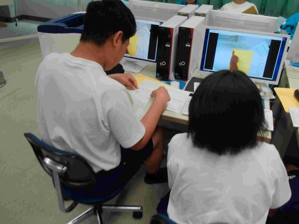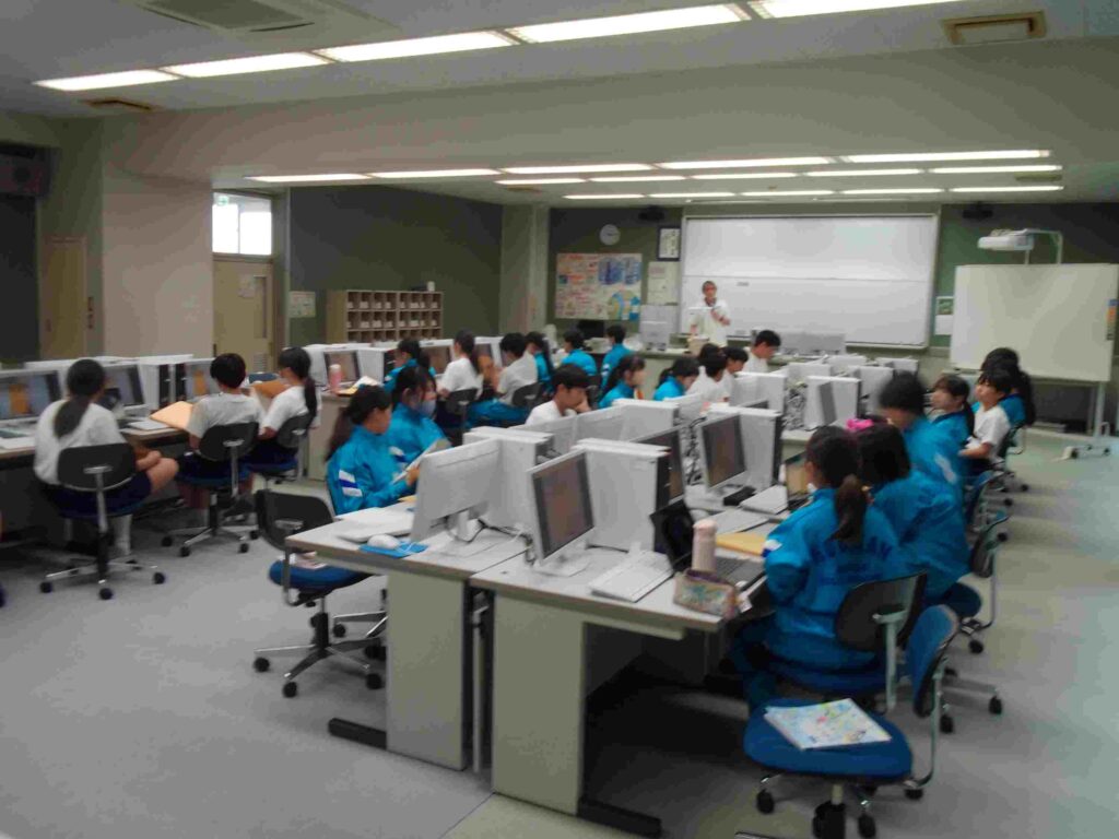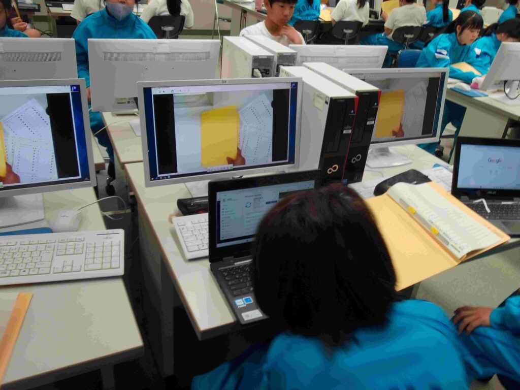 2画面(1年) 2026年4月23日 最終更新日時 : 2026年4月23日 kumagaya_edit 最初に3年間使うファイルの使い方を説明しています。目の前にはタブレット、奥には先生の手元が映るPC画面。ICTが進んでいます。