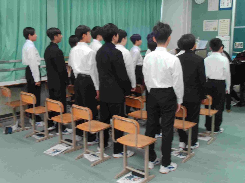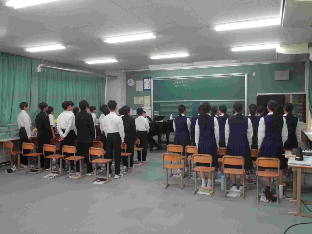 今日から授業が本格的に始まります。音楽の授業では、これまで習った曲を歌唱しています。