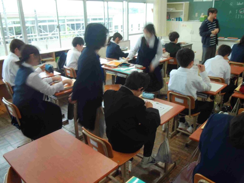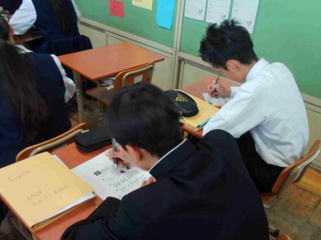 生リスニング(2年) 2026年4月30日 最終更新日時 : 2026年4月30日 kumagaya_edit 授業の中でリスニング問題を行っています。録音されたものではなく、英語の先生とALTの先生による生での英会話を聞き取っています。