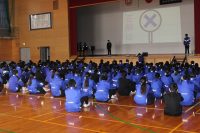 生徒会朝会 生活安全委員会 2026年2月16日 最終更新日時 : 2026年2月16日 kumagaya_edit 2月13日(金)生活安全委員会による生徒会朝会がありました。 自転車の安全な乗り方について、クイズ形式で学習しました。 安全に気を付けて、自転車に乗りましょう。