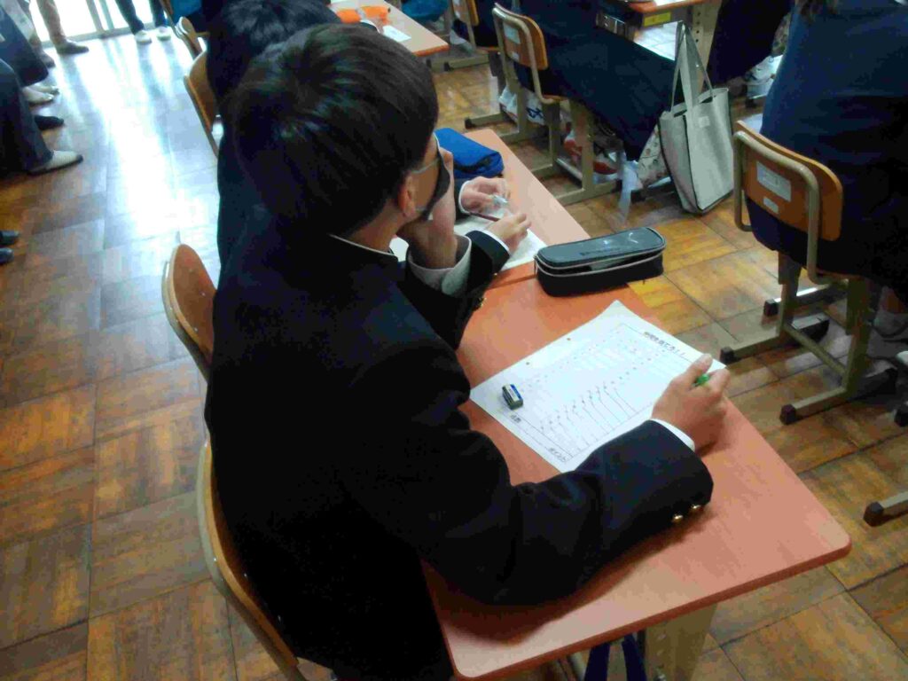 私は誰でしょう(1年) 2026年4月27日 最終更新日時 : 2026年4月27日 kumagaya_edit 自分自身で書いたプロフィールをもとに、それが誰なのかをあてるクイズをしています。自分が思っている自分と他人が思っている自分が一致しているでしょうか