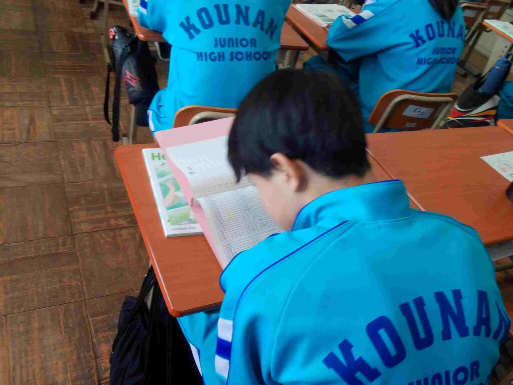 一覧でプリントにまとめられた英単語の読みと意味を確認しています。