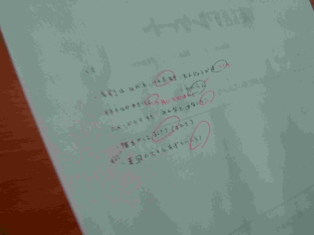 先生が英語で自己紹介しました。内容が聞き取れているかテストしています。