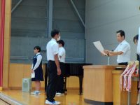 10月7日(火)全校朝会で主に運動関係の表彰を行いました。