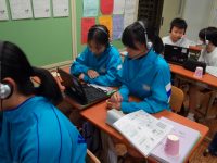 OBL 2025年10月11日 最終更新日時 : 2025年10月11日 kumagaya_edit 10月1日(水)1年生がOBLに取り組みました。 画面の向こうのALTの先生と、楽しく英語でコミュニケーションできました。