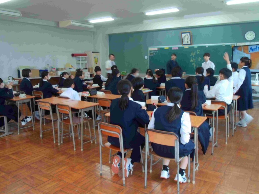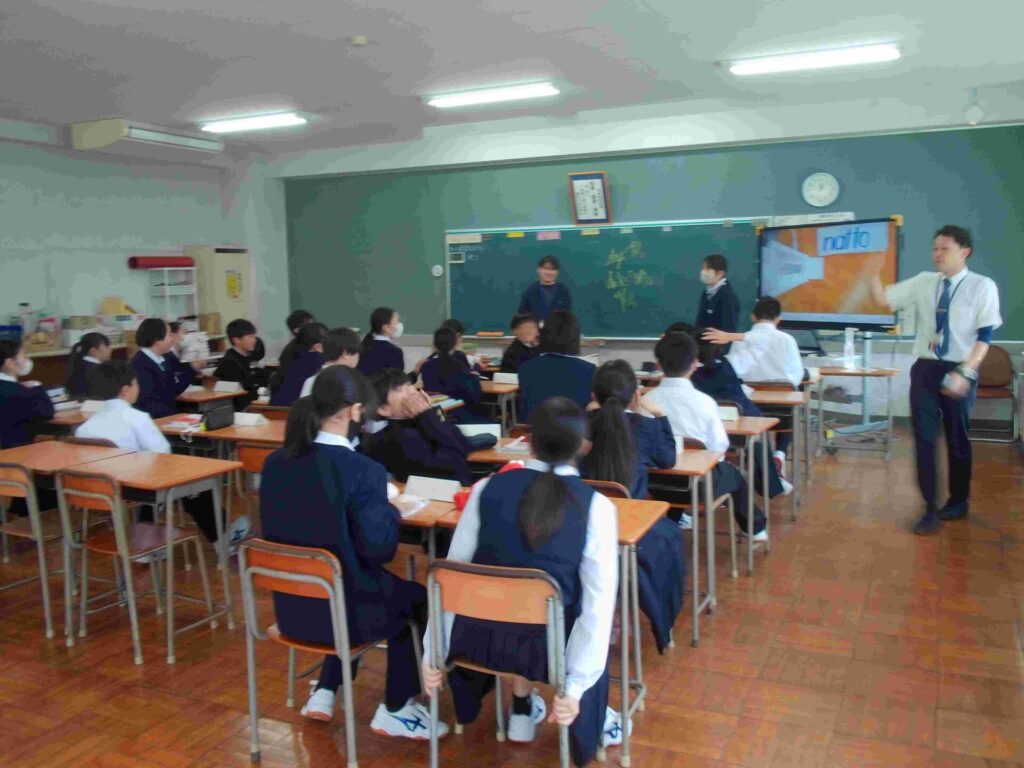 1年生の英語、活気があります。みんなで正解を目指しています。