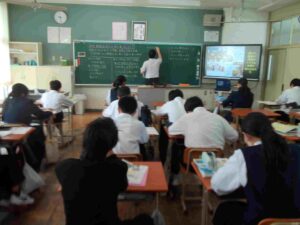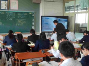 1年生のOBLがありました。 画面の向こうのALTの先生方と会話することができました。